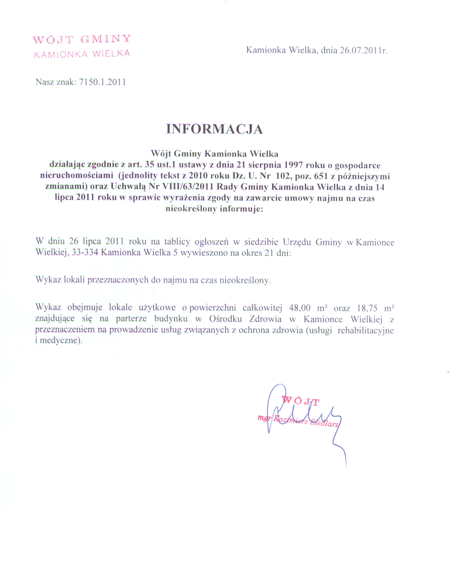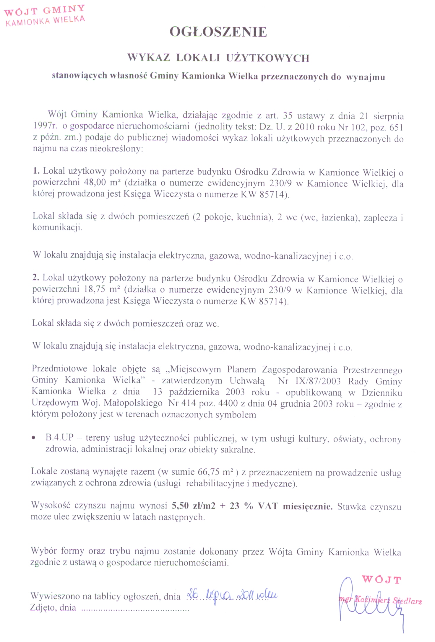 OBWIESZCZENIE Wójta Gminy Kamionka Wielka